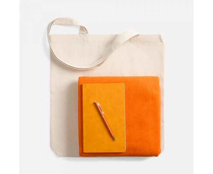 Набор с основной канцелярией и пледом — классика жанра в уютном исполнении. С компактным блокнотом под рукой будет удобно делать заметки в любое время, а легкий флисовый плед позволит выразить самые теплые пожелания.