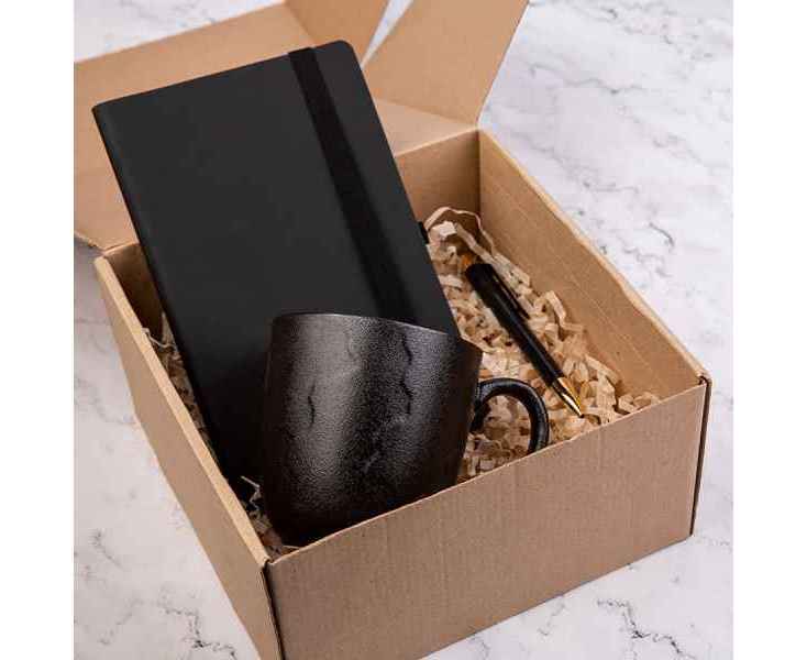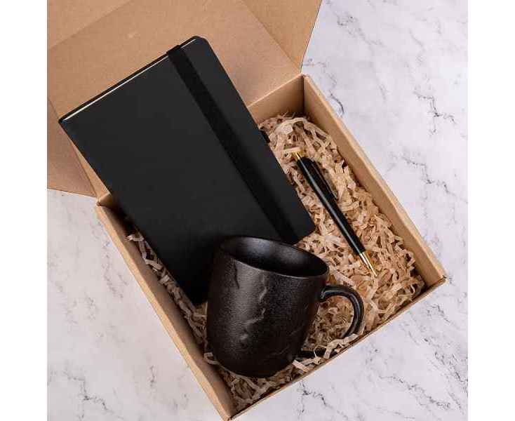 Подробнее о Набор подарочный BLACKNGOLD: кружка, ручка, бизнес-блокнот, коробка со стружкой