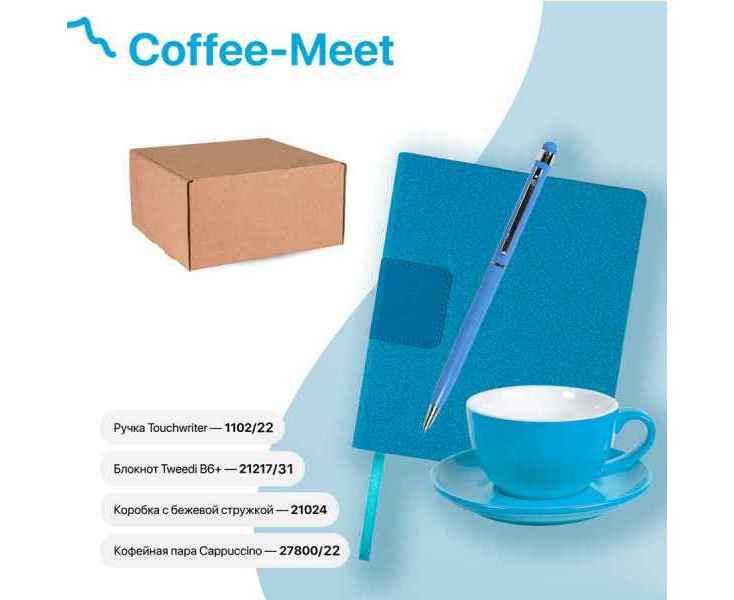 Подробнее о Набор подарочный COFFEE-MEET: бизнес-блокнот, ручка, чайная/кофейная пара, коробка, стружка, голубой