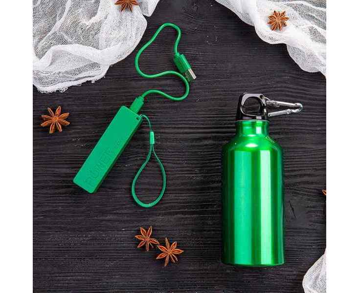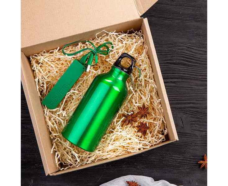 Набор подарочный ENERGYHINT: зарядное устройство, бутылка, коробка, стружка, зеленый