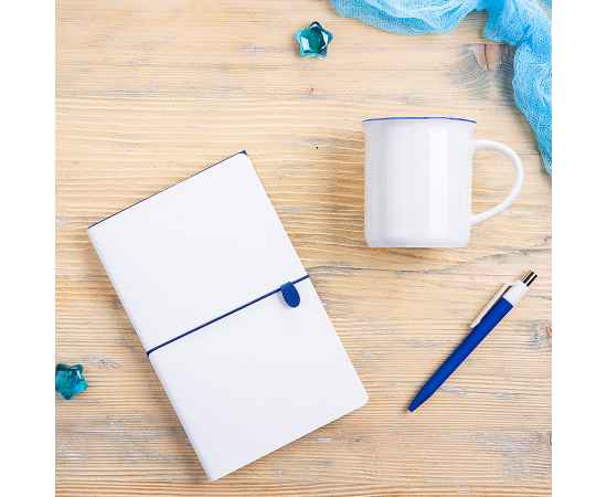 Набор подарочный FINELINE: кружка, блокнот, ручка, коробка, стружка, белый с синим