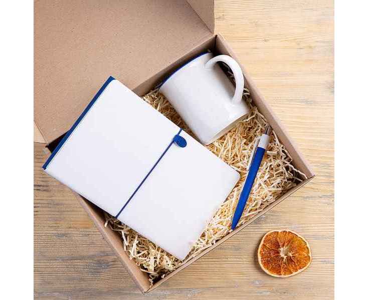 Подробнее о Набор подарочный FINELINE: кружка, блокнот, ручка, коробка, стружка, белый с синим