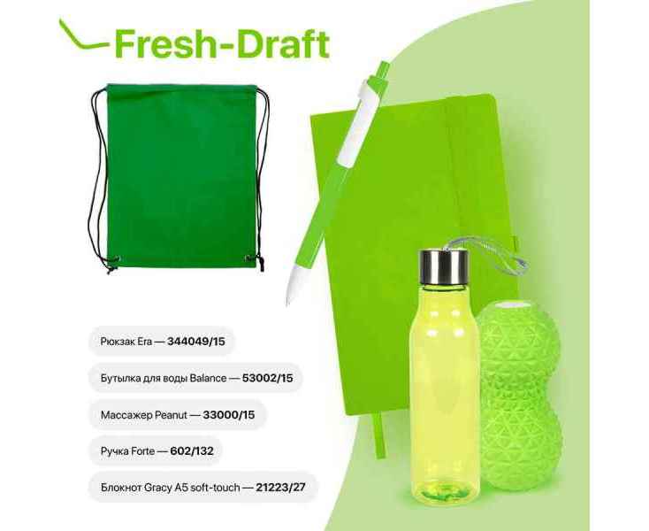 Подробнее о Набор подарочный FRESH-DRAFT: бизнес-блокнот, ручка, массажер, бутылка, рюкзак, зеленое яблоко