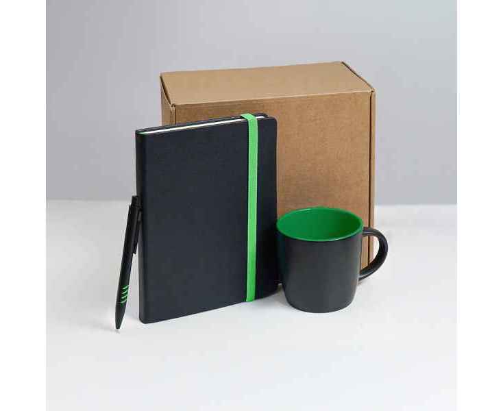 Подробнее о Набор подарочный HYPER: кружка, ежедневник, ручка, черный/зеленый