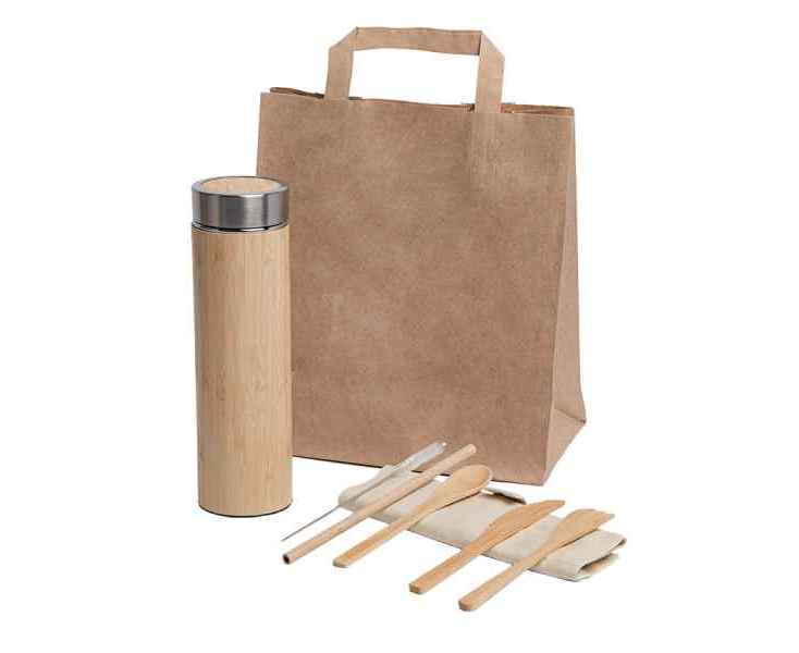 Набор подарочный,SNACK PACKВ набор входят:Набор столовых приборов CORPAX в чехле,,Набор из пяти предметов: ложка, вилка, нож, трубочка для питья с ершиком для чистки.Предметы убраны в холщовый чехол на кнопке и внутри закреплены резинкой.Индивидуальная упаковка - ПЭ пакетарт. 346887размер: ,6,5 х 22 х 2,5 см,,материал: бамбук, холстТермос ,MOLTEX,арт. 346156размер:,24,5 х 6,9 смобъем: 500 мл,,материал: нержавеющая сталь, бамбукПакет бумажный QUADRATA M,,арт. 21078размер: 28х24х14 cмматериал: крафт, плотность 80 г/м2ВНИМАНИЕ! Набор поставляется в разобранном виде.
