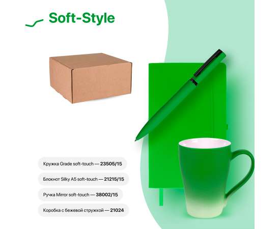 Подробнее о Набор подарочный SOFT-STYLE: бизнес-блокнот, ручка, кружка, коробка, стружка, зеленый