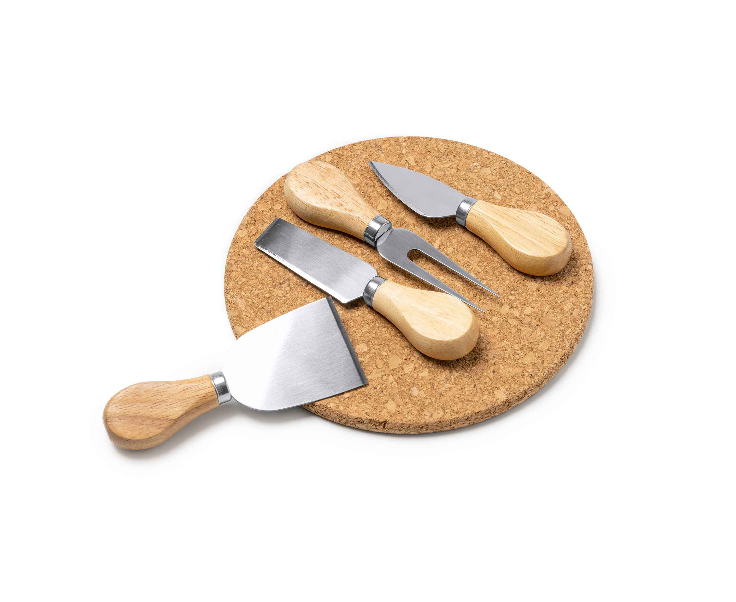 Набор для сыра с 4 приборами из нержавеющей стали с деревянной ручкой. Представлен в крафтовой упаковке.