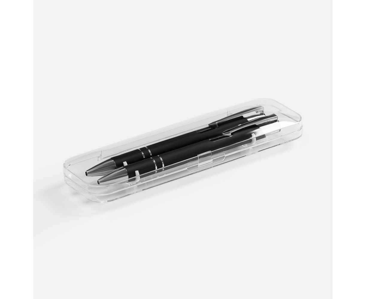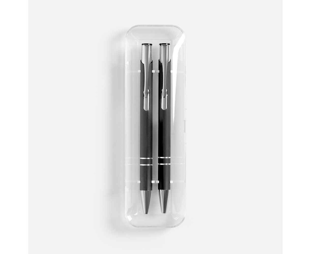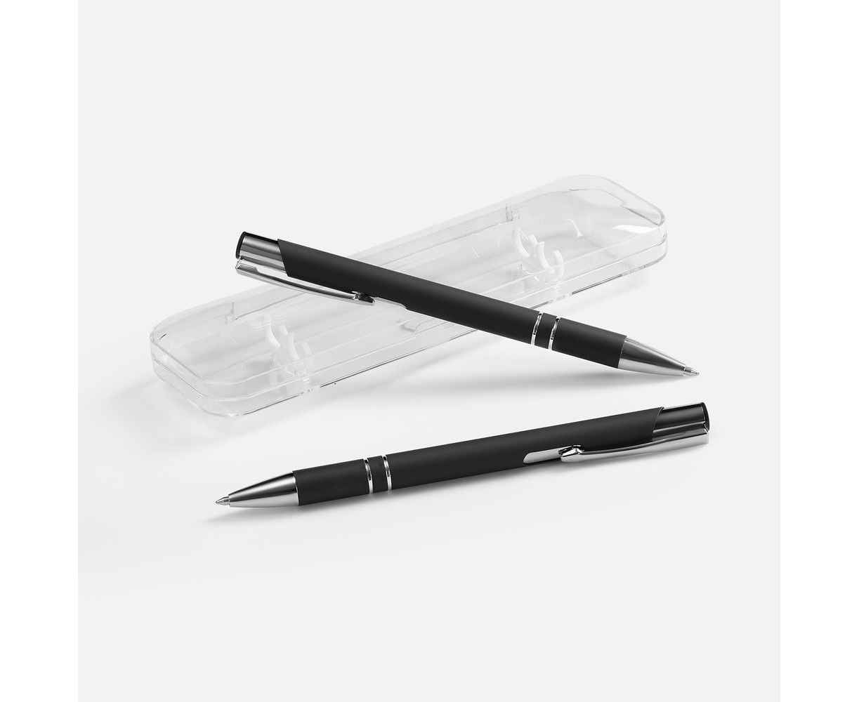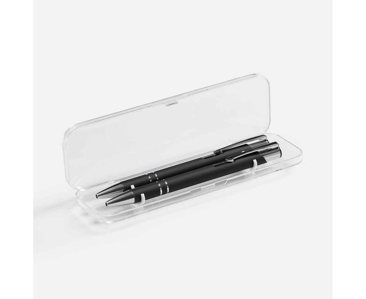 Набор из двух ручек Keskus с покрытием софт-тач в прозрачном пластиковом футляре.