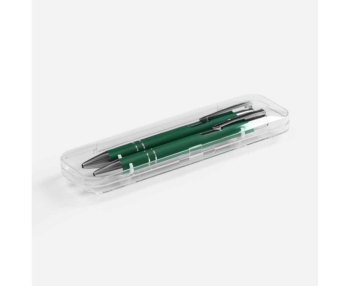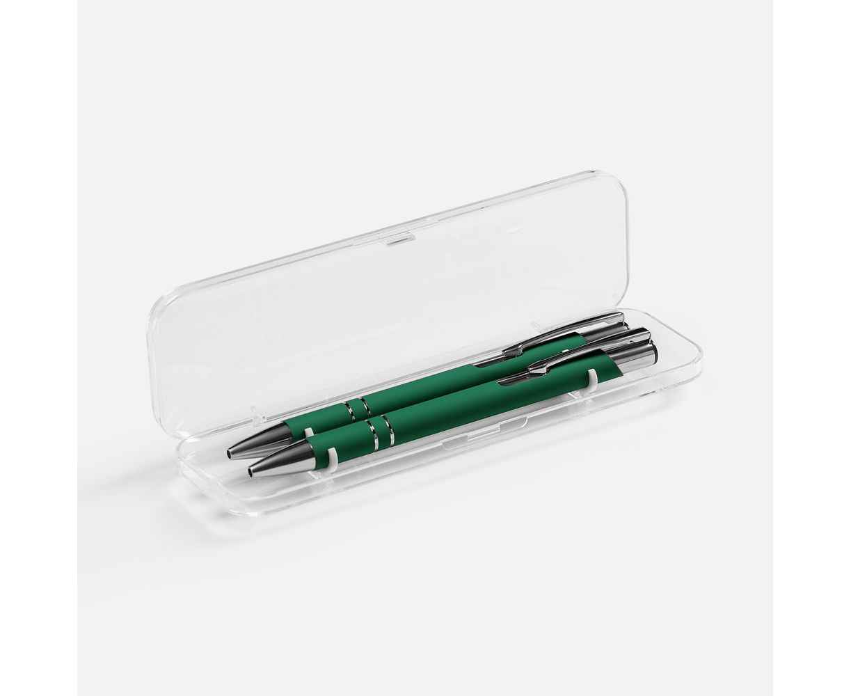 Набор из двух ручек Keskus с покрытием софт-тач в прозрачном пластиковом футляре.