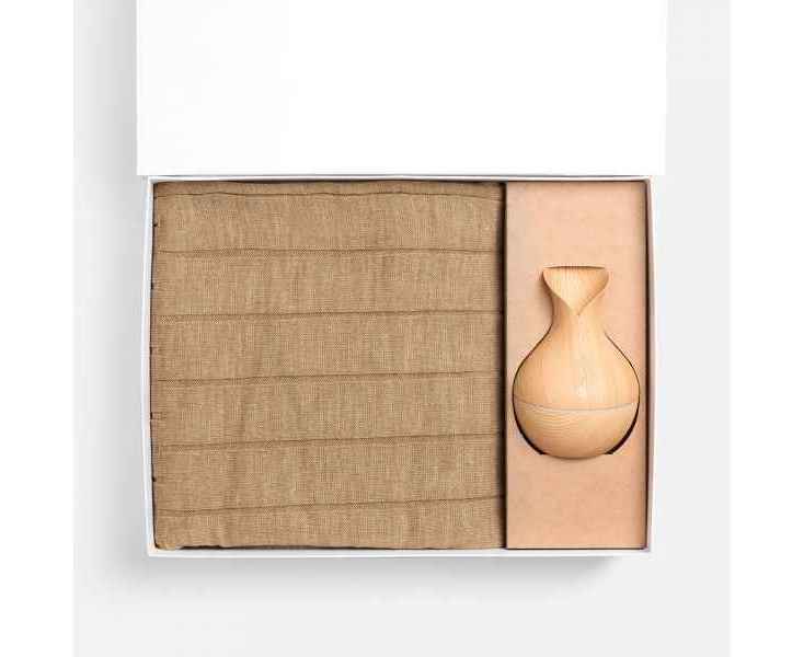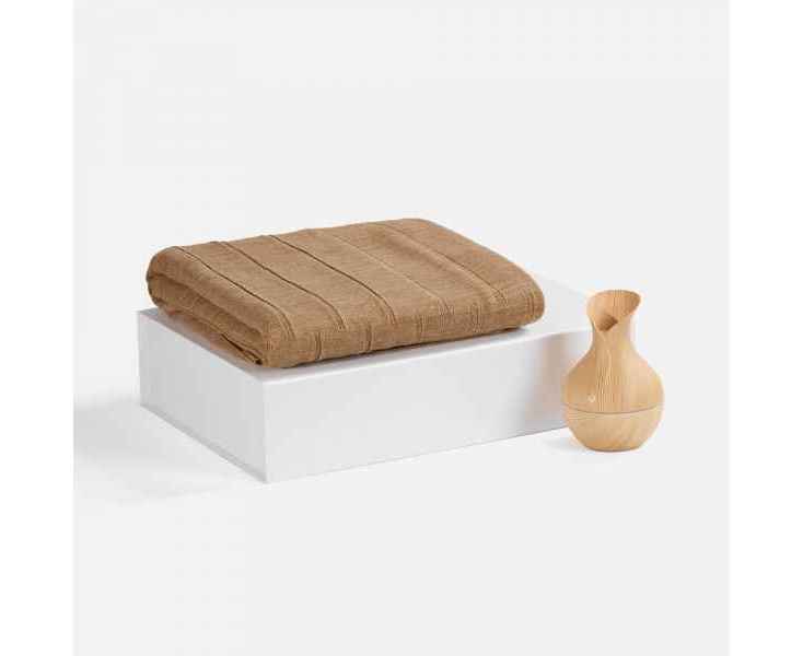 Плед с мягкой текстурой приглашает расслабиться в тепле, а изящный увлажнитель-ароматизатор создает в помещении атмосферу гармонии.