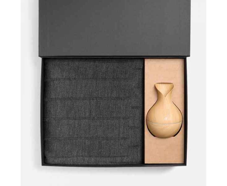 Плед с мягкой текстурой приглашает расслабиться в тепле, а изящный увлажнитель-ароматизатор создает в помещении атмосферу гармонии.