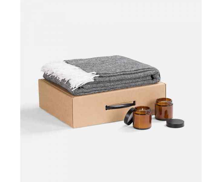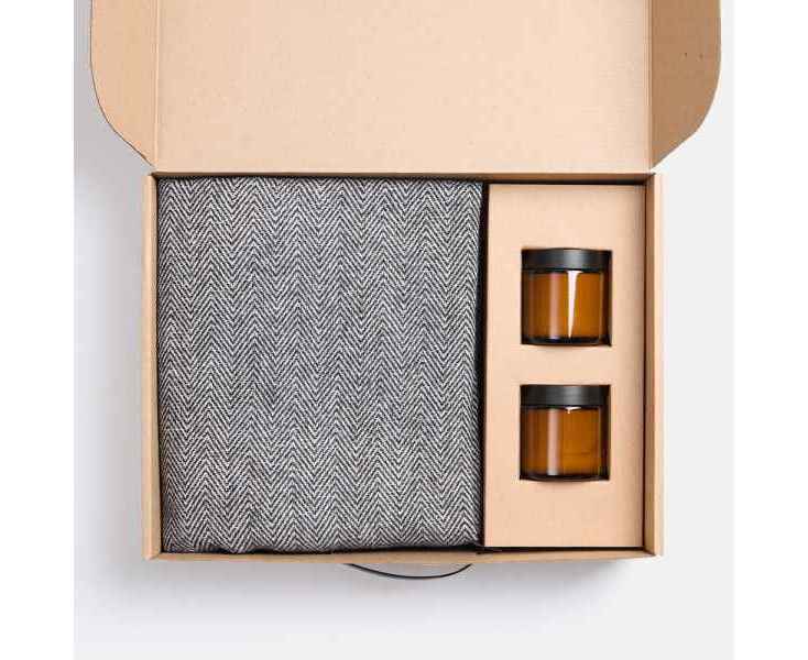 Мягкий плед с нежной бахромой станет идеальным спутником для расслабляющих вечеров и придаст стильный облик любому интерьеру. Две ароматические свечи в элегантных стеклянных баночках мягко наполнят пространство расслабляющим светом и тонким ароматом, добавляя нотки спокойствия и гармонии.