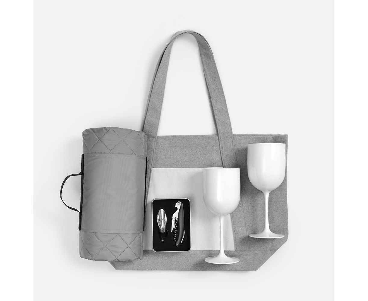 Складной двусторонний плед идеален для пикника: на внутренней стороне из флиса можно уютно устроиться на травке или пляже, в то время как наружная сторона из полиэстера не даст пледу намокнуть или испачкаться. С набором для вина получится с легкостью откупорить бутылку, а стильные бокалы просто незаменимы. Выполненные из пластика, они не разобьются и точно не испортят праздник или пикник.Емкость бокала 480 мл.