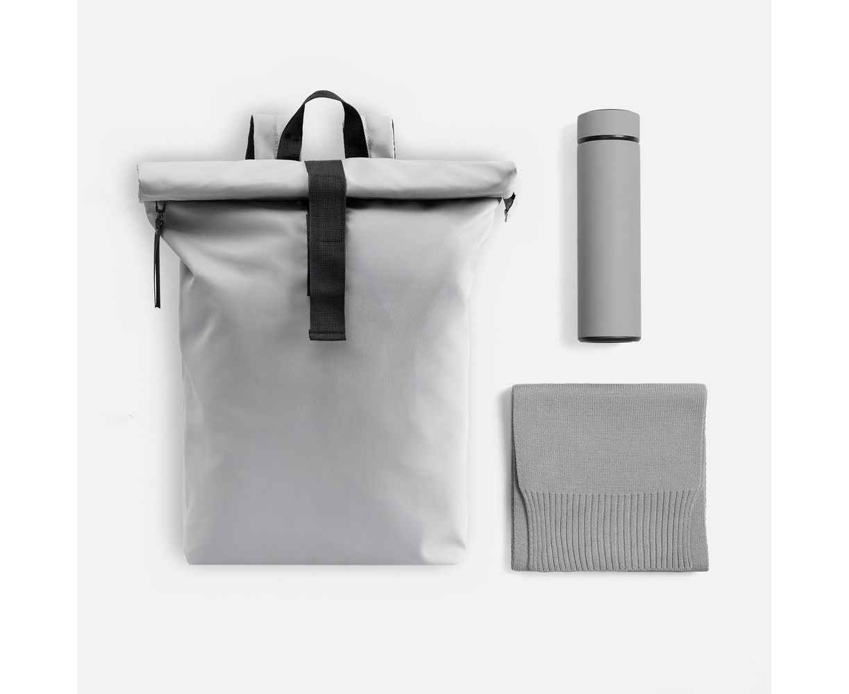 Составляющие набора — шарф и термос — помогут оставаться стильным и, что немаловажно, довольным даже в холодное время года. Модный и практичный рюкзак с удобной регулировкой объема роллтоп всегда подстроится под ситуацию, а потому станет просто незаменим как ежедневно в городе, так и в путешествии.