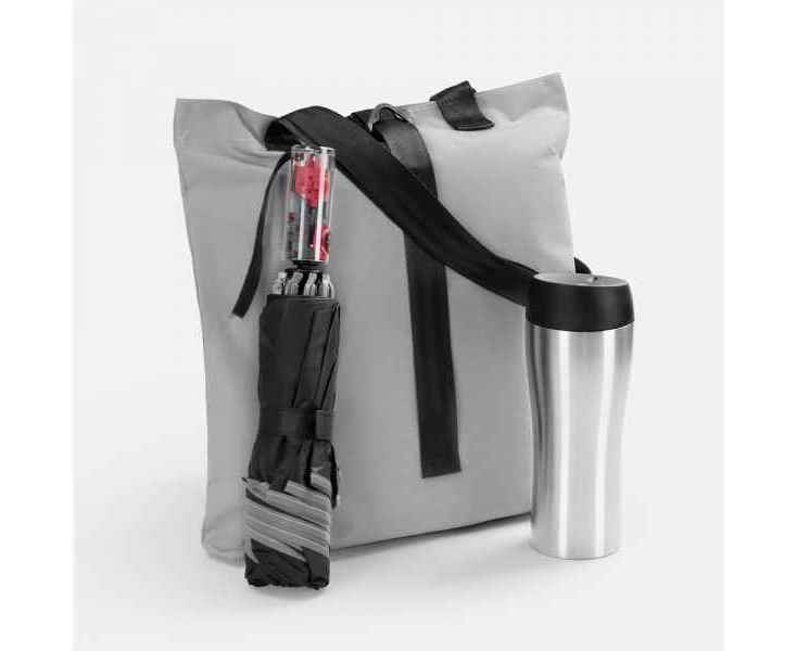 В набор Future Manifest входят необычный складной зонт наоборот и вакуумный термостакан с высокими показателями удержания температуры, упакованные в шопер из светоотражающей ткани, — идеальный аксессуар для комфортных и безопасных прогулок в любое время суток.