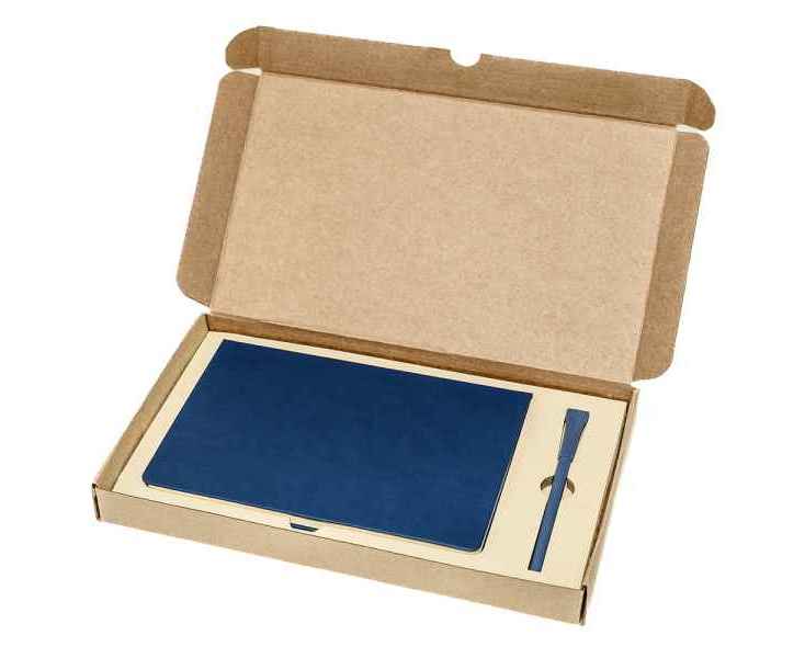 Подарочный набор в стильной картонной коробке бежевого цвета. Внутри на аккуратном ложементе располагаются ежедневник недатированный в твердом переплете и картонная ручка с колпачком.