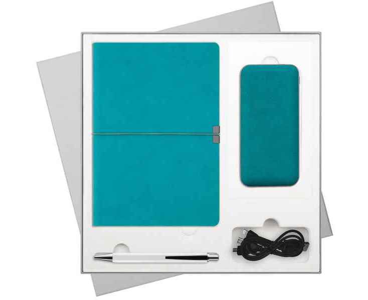Подробнее о Portobello Подарочный набор In Velour, бирюзовый (ежедневник, ручка, аккумулятор)