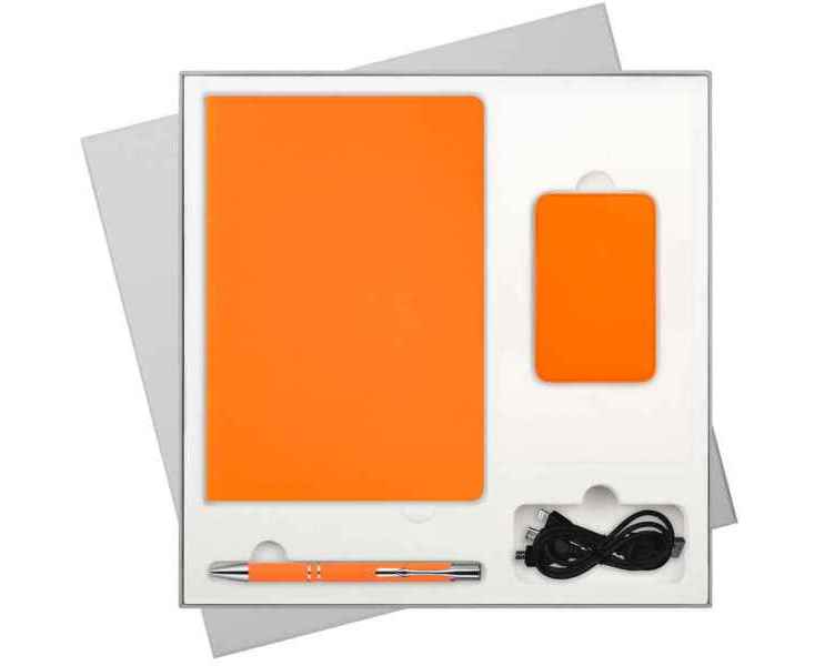 Подарочный набор Spark, оранжевый (ежедневник, ручка, аккумулятор)