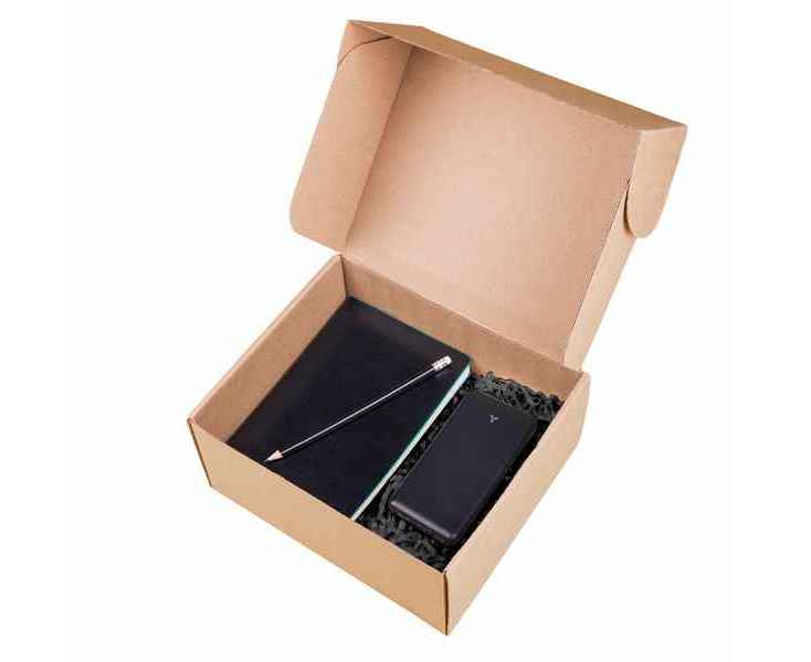 Подарочный набор TOTAL: бизнес-блокнот, карандаш, зарядное устройство, коробка, стружка