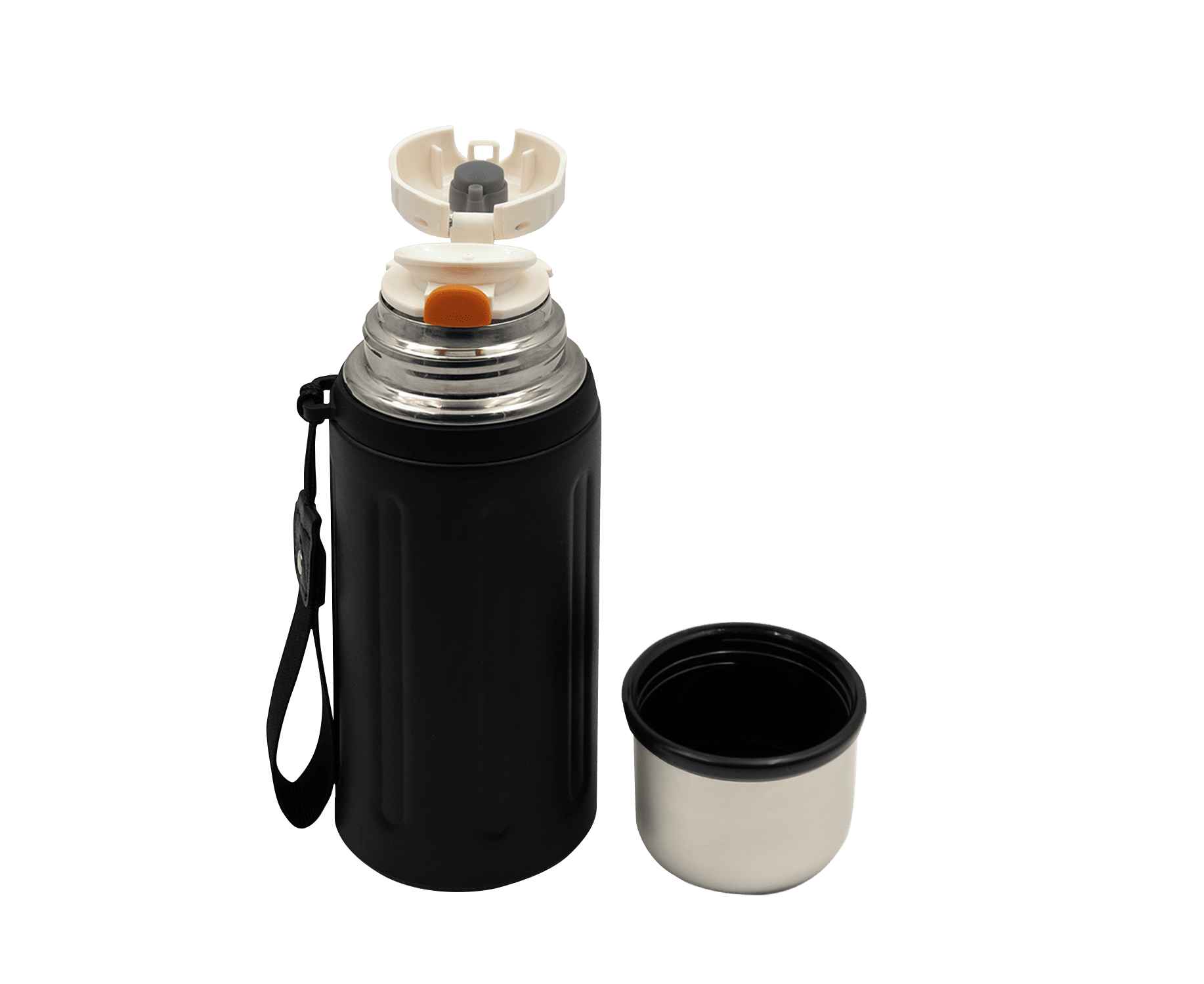 Объем в 600 мл позволит взять с собой достаточно напитка, будь то горячий кофе, ароматный чай или освежающий холодный сок. Крышка термоса является важной частью функциональности и удобства использования. Она состоит из двух частей: крышки-чашки и крышки с клапаном. Обе они имеют завинчивающийся механизм, который обеспечивает надежную герметичность. Крышка-чашка имеет емкость 100мл и предназначена для самостоятельного питья: в нее удобно наливать напиток и держать в руках. Съемный ремешок термоса сделает переноску удобной и комфортной.