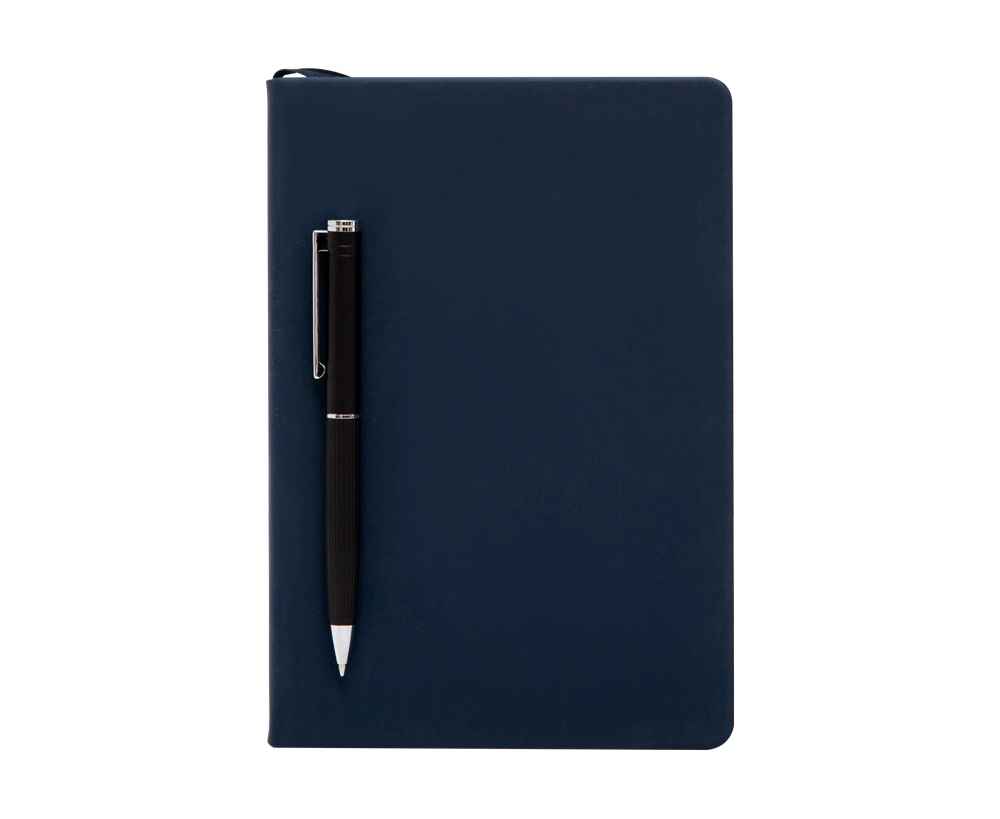 Бизнес-блокнот в твёрдой обложке с магнитным держателем для ручки имеет ляссе в тон обложки. Бумажный блок разлинован в линейку и выполнен из бумаги, полученной из древесины из специальных восполняемых лесных ресурсов, имеет сертификат FSC.