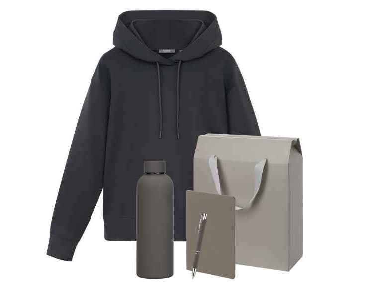 Набор с одеждой ALEX (худи, термобутылка, блокнот, ручка), серый, XL