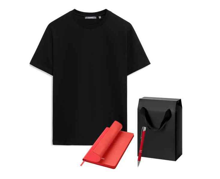 Набор с одеждой KRIS (футболка, ежедневник, ручка), красный/черный, S