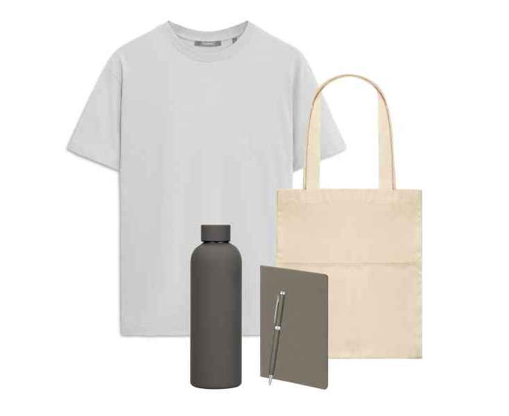 Набор с одеждой KRIS (футболка, термобутылка, ежедневник, ручка, шоппер), серый, XL
