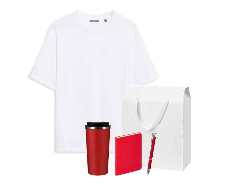 Набор с одеждой RUST (футболка, термокружка, ежедневник, ручка), красный/белый, XL/2XL