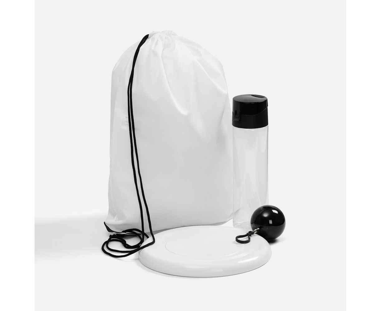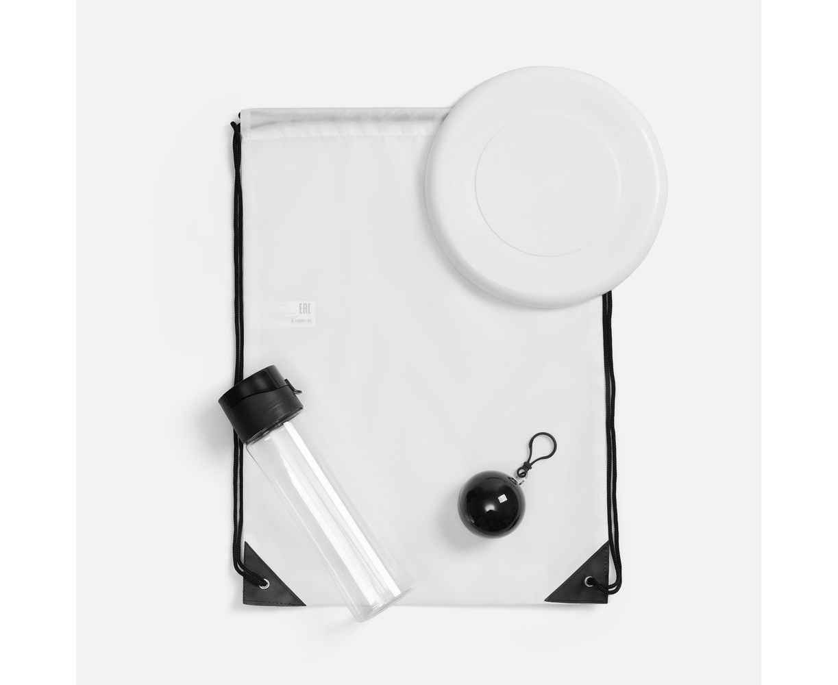 - Практичность — бутылка, тарелка-фрисби и дождевик в футляре решают базовые потребности на отдыхе.