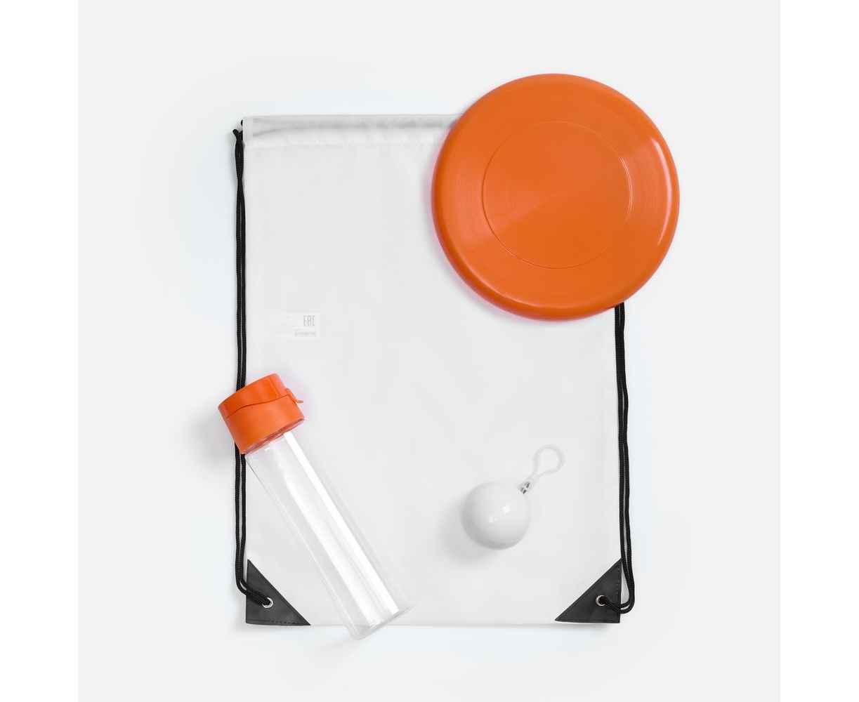 - Практичность — бутылка, тарелка-фрисби и дождевик в футляре решают базовые потребности на отдыхе.