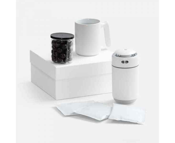 Набор «Микроклимат» создаст идеальную атмосферу — для бодрости или расслабления! Увлажнитель смягчит воздух, поможет снять усталость и мыслить ясно. В удобной керамической кружке Visari любимый напиток будет дольше оставаться теплым, дрип-пакеты позволят легко приготовить вкусный кофе без лишних устройств, а фундук в шоколаде станет изящным завершением настоящего ритуала наслаждения.