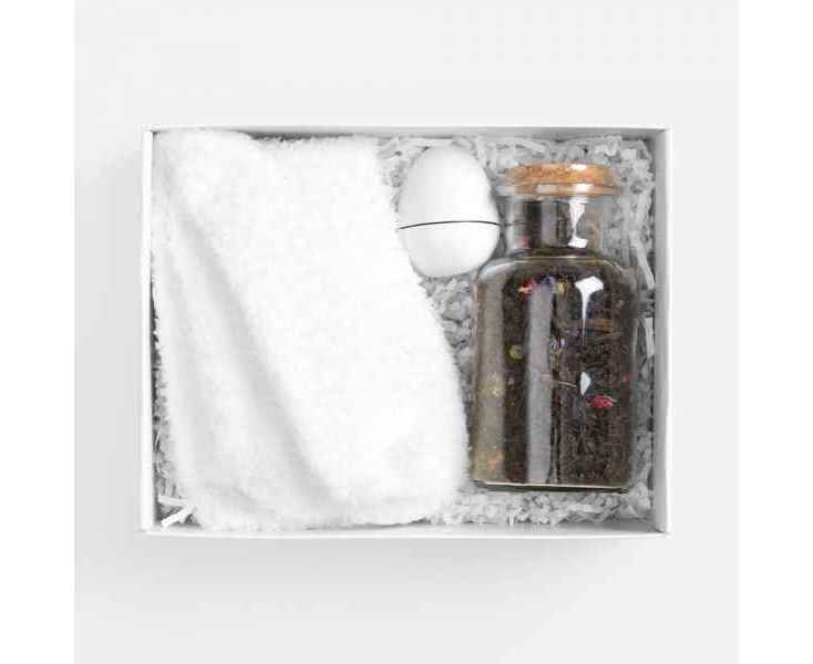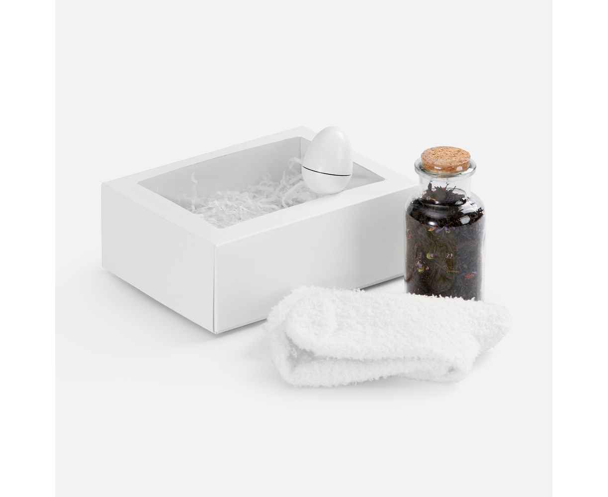 Это базовые элементы заботы — мягкие носки и бальзам для губ — и уникальный сорт чая, задающий особое настроение. Идеальное решение для всех, кто ценит спокойные моменты уединения и эстетику повседневных ритуалов.