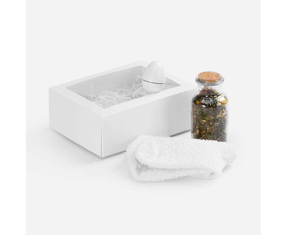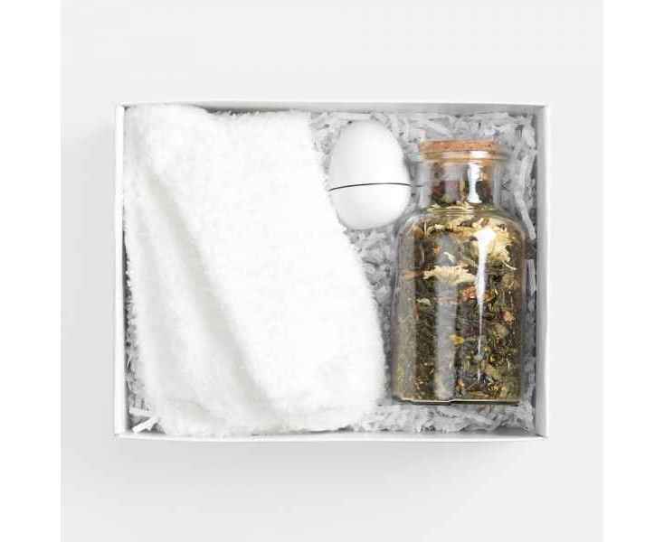 Это базовые элементы заботы — мягкие носки и бальзам для губ — и уникальный сорт чая, задающий особое настроение. Идеальное решение для всех, кто ценит спокойные моменты уединения и эстетику повседневных ритуалов.