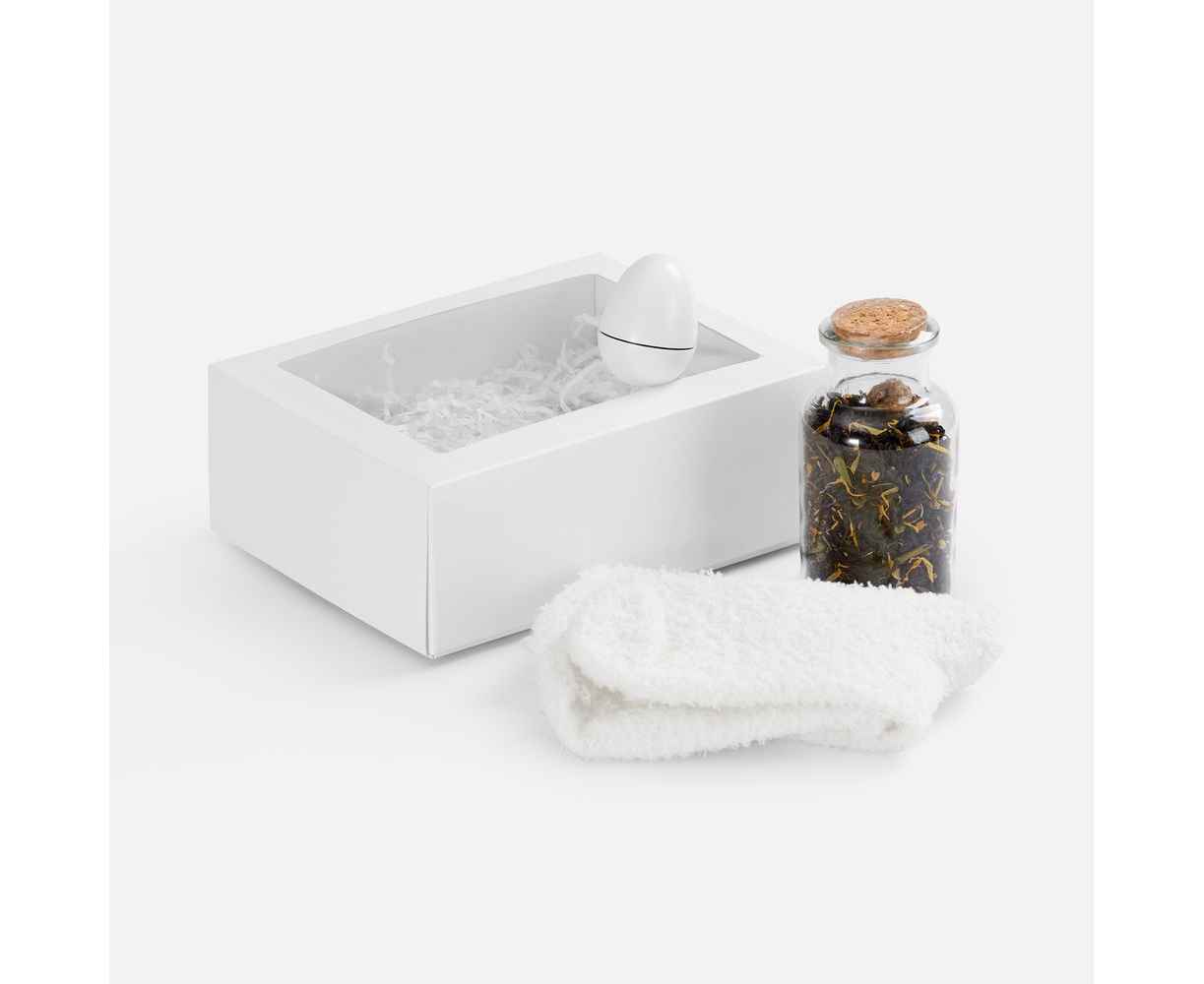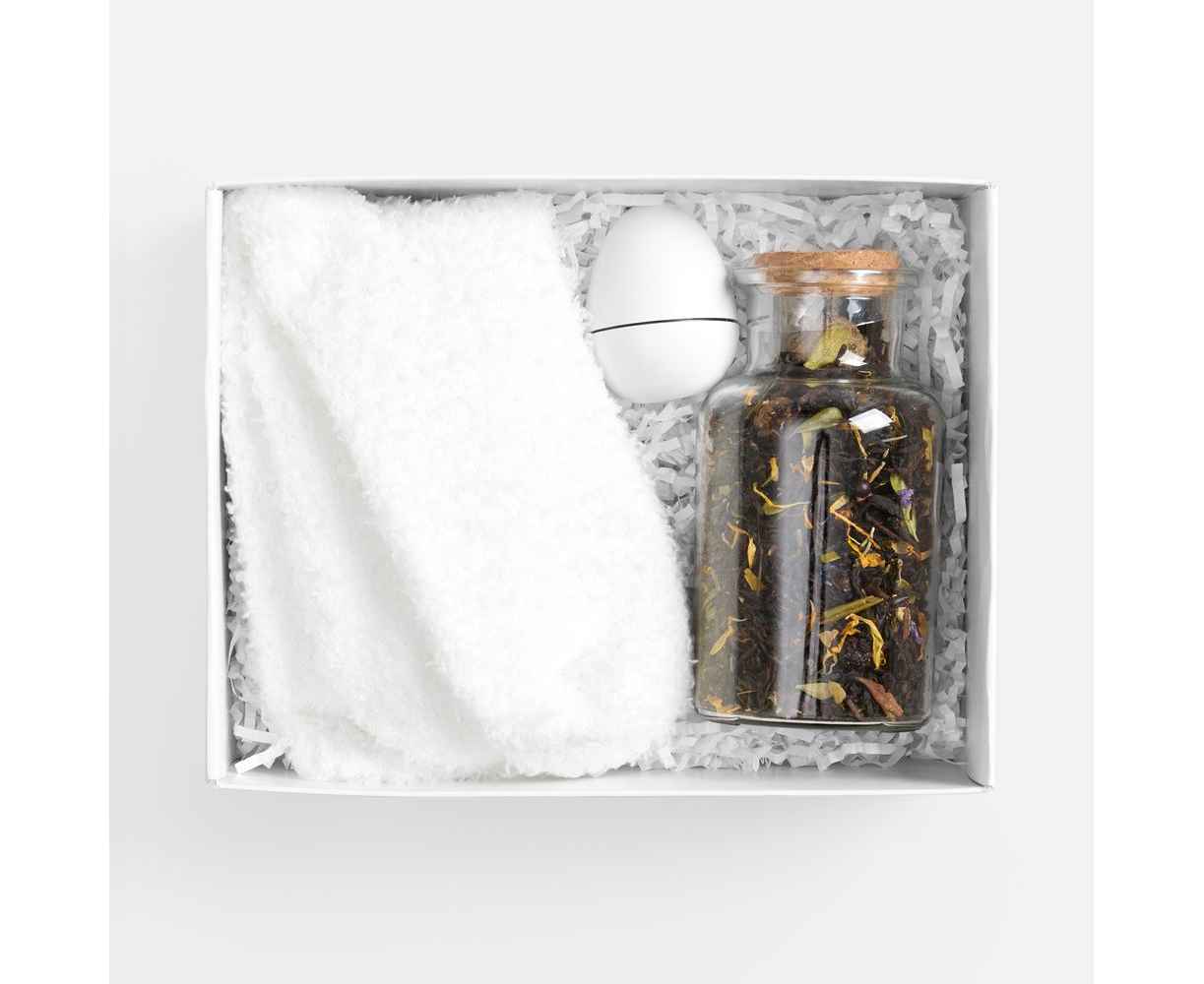 Это базовые элементы заботы — мягкие носки и бальзам для губ — и уникальный сорт чая, задающий особое настроение. Идеальное решение для всех, кто ценит спокойные моменты уединения и эстетику повседневных ритуалов.
