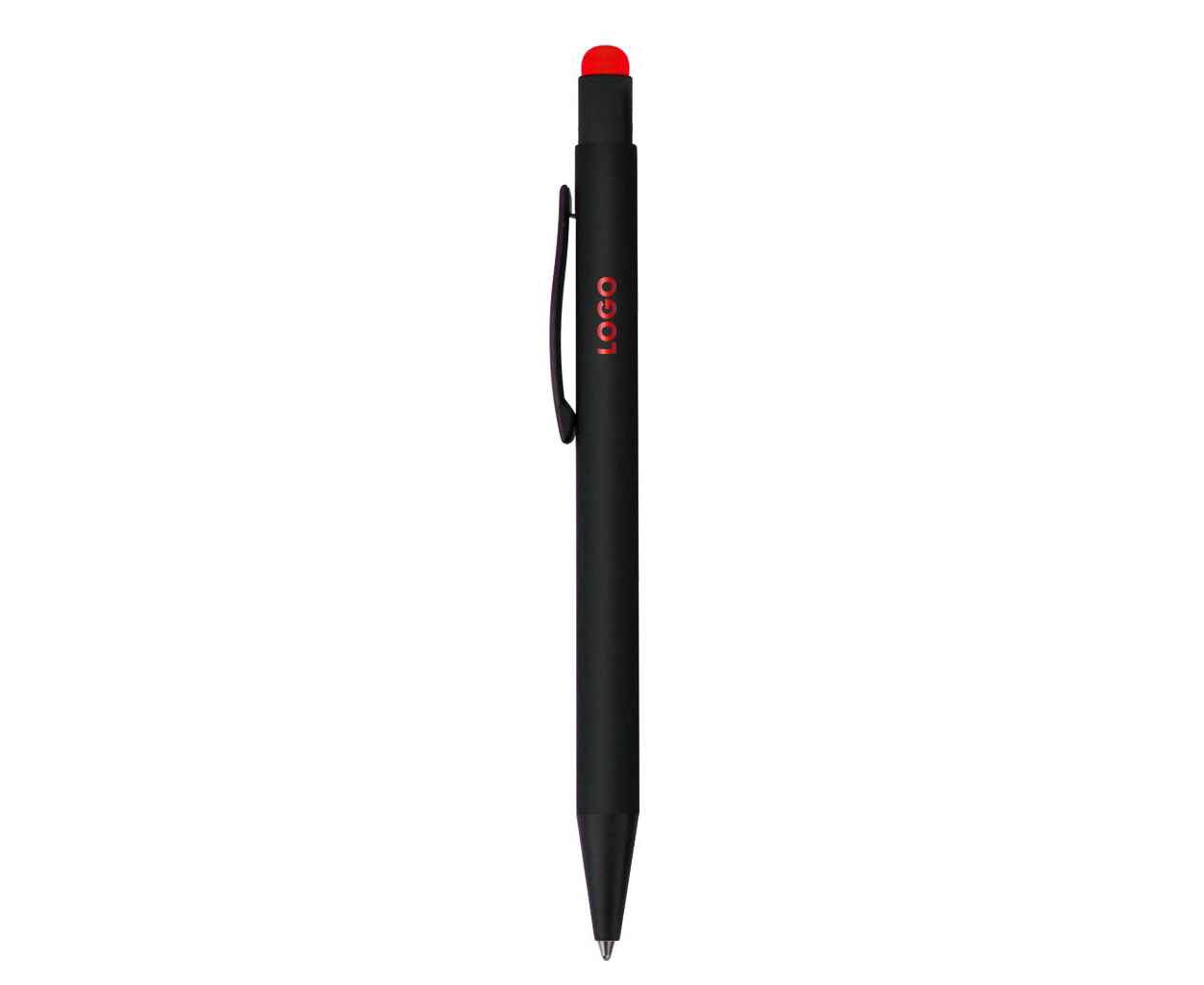 Металлическая шариковая ручка Raven черного цвета с поверхностью soft-touch. Особенностью этой ручки является зеркальная гравировка, которая вскрывается в цвет стилуса.