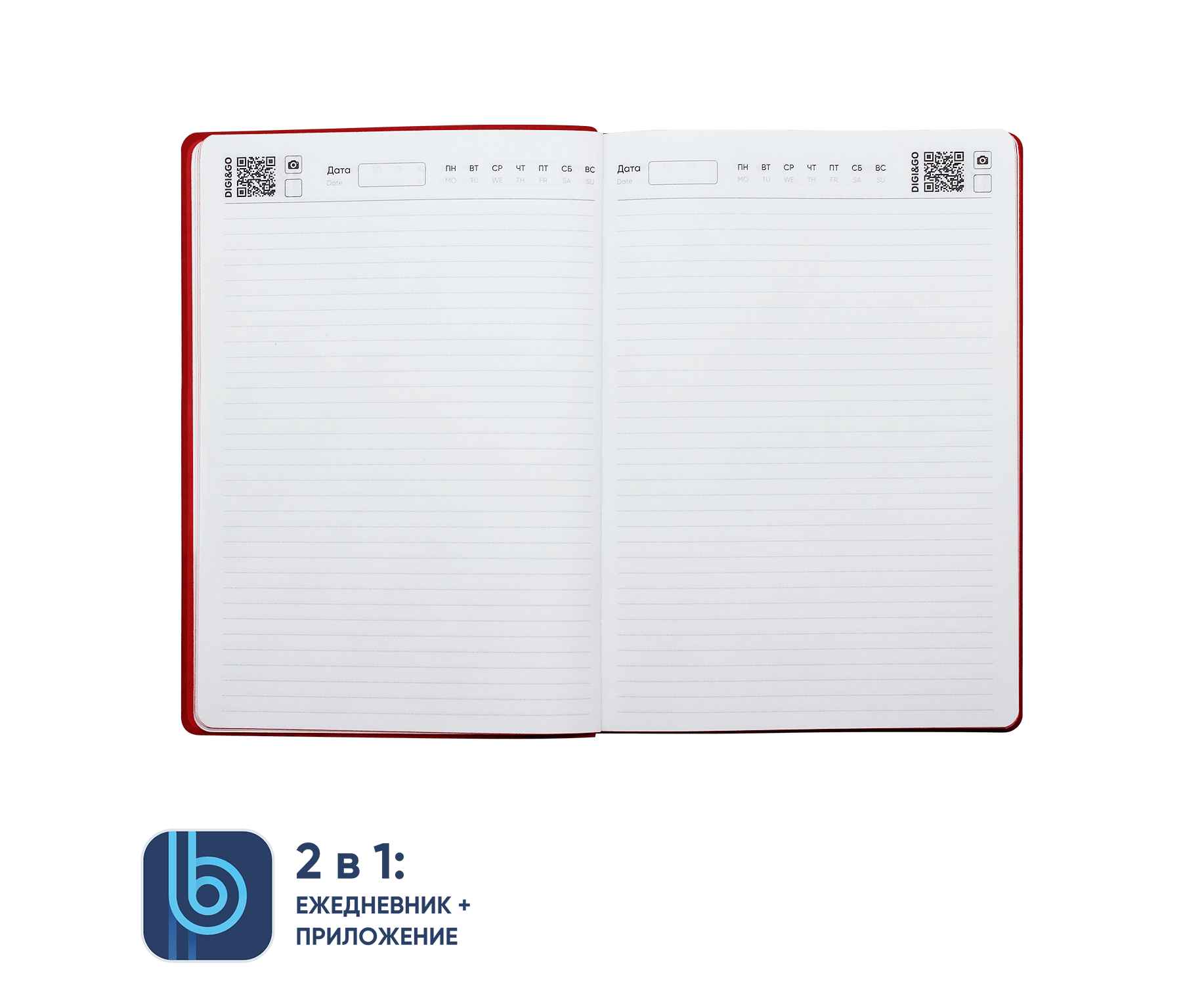 Ежедневник Bplanner 04 — изготовлен из качественной экокожи по своей структуре напоминающей софт-тач. Материал отличается более высокими эксплуатационными характеристиками и менее прихотлив при активном использовании (ношение в сумке, рюкзаке). У ежедневника предусмотрена опция хранения ручки на корешке, цветной форзац и нахзац. Обрез выкрашен в цвет обложки. На форзаце ежедневника расположен qr-код, который активирует годовой доступ к мобильному приложению. А приложение способно теперь еще и распознать и оцифровать текстовые заметки.