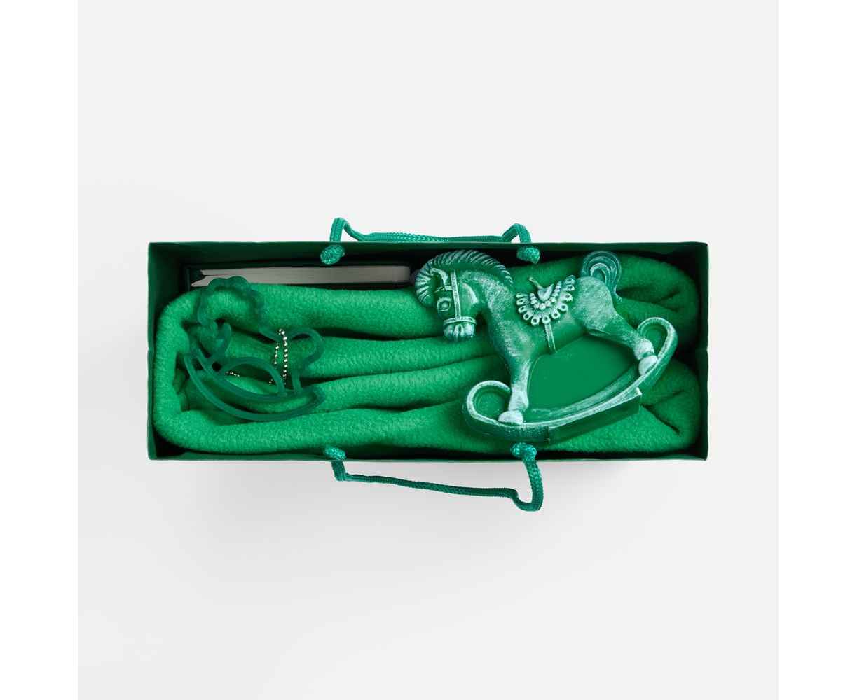 А еще у Creativerse есть своя изюминка: актуальная 3D-подвеска в форме детской лошадки-качалки, которая крепится к подарочному пакету и задает праздничный тон всему набору. Позднее она непременно станет частью повседневного образа, ведь такую милую подвеску можно прикрепить куда угодно — как символ года и просто счастливый талисман.