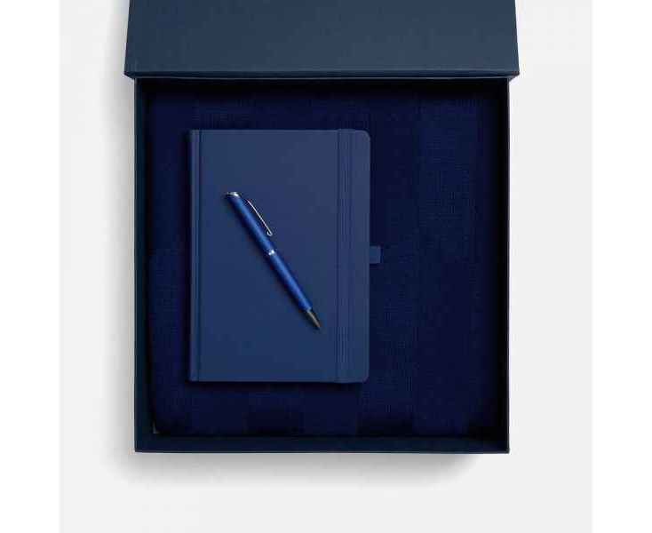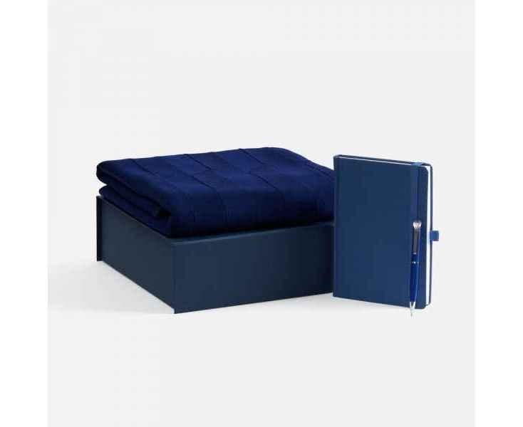 Однотонный набор с основной канцелярией и пледом — классика жанра в уютном исполнении. С компактным ежедневником будет удобно делать заметки в любое время — благодаря петельке для ручки любимый пишущий инструмент будет всегда под рукой. А изысканный акриловый плед с геометрическим узором позволит выразить самые теплые пожелания и ддобавит плавных линий в интерьер.