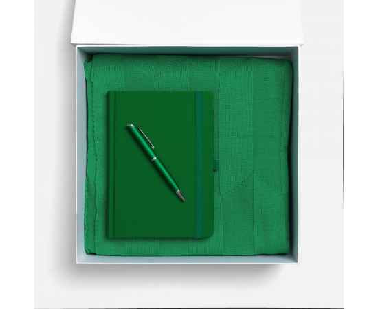 Однотонный набор с основной канцелярией и пледом — классика жанра в уютном исполнении. С компактным ежедневником будет удобно делать заметки в любое время — благодаря петельке для ручки любимый пишущий инструмент будет всегда под рукой. А изысканный акриловый плед с геометрическим узором позволит выразить самые теплые пожелания и ддобавит плавных линий в интерьер.