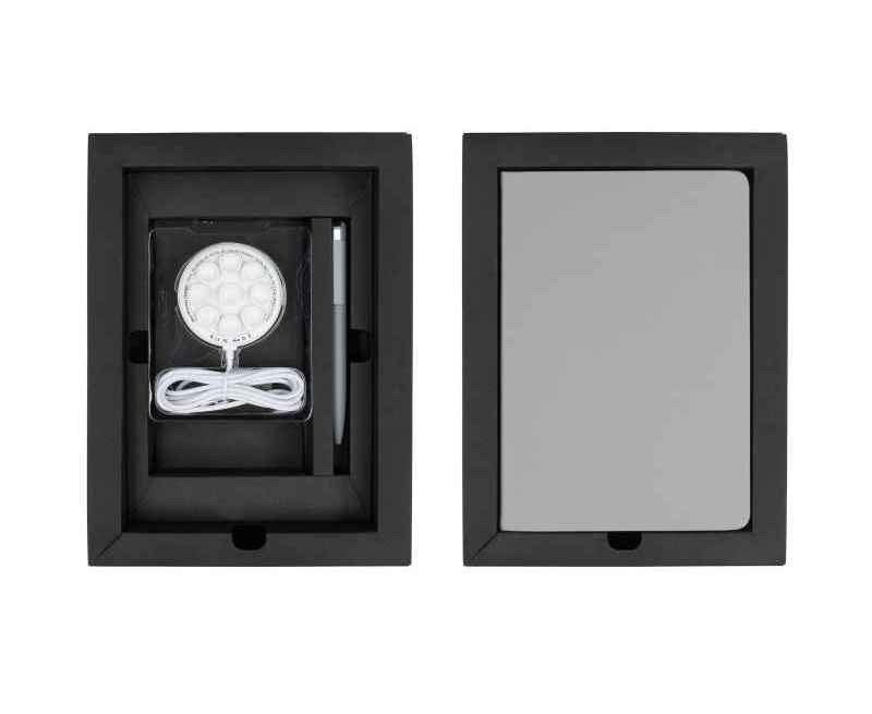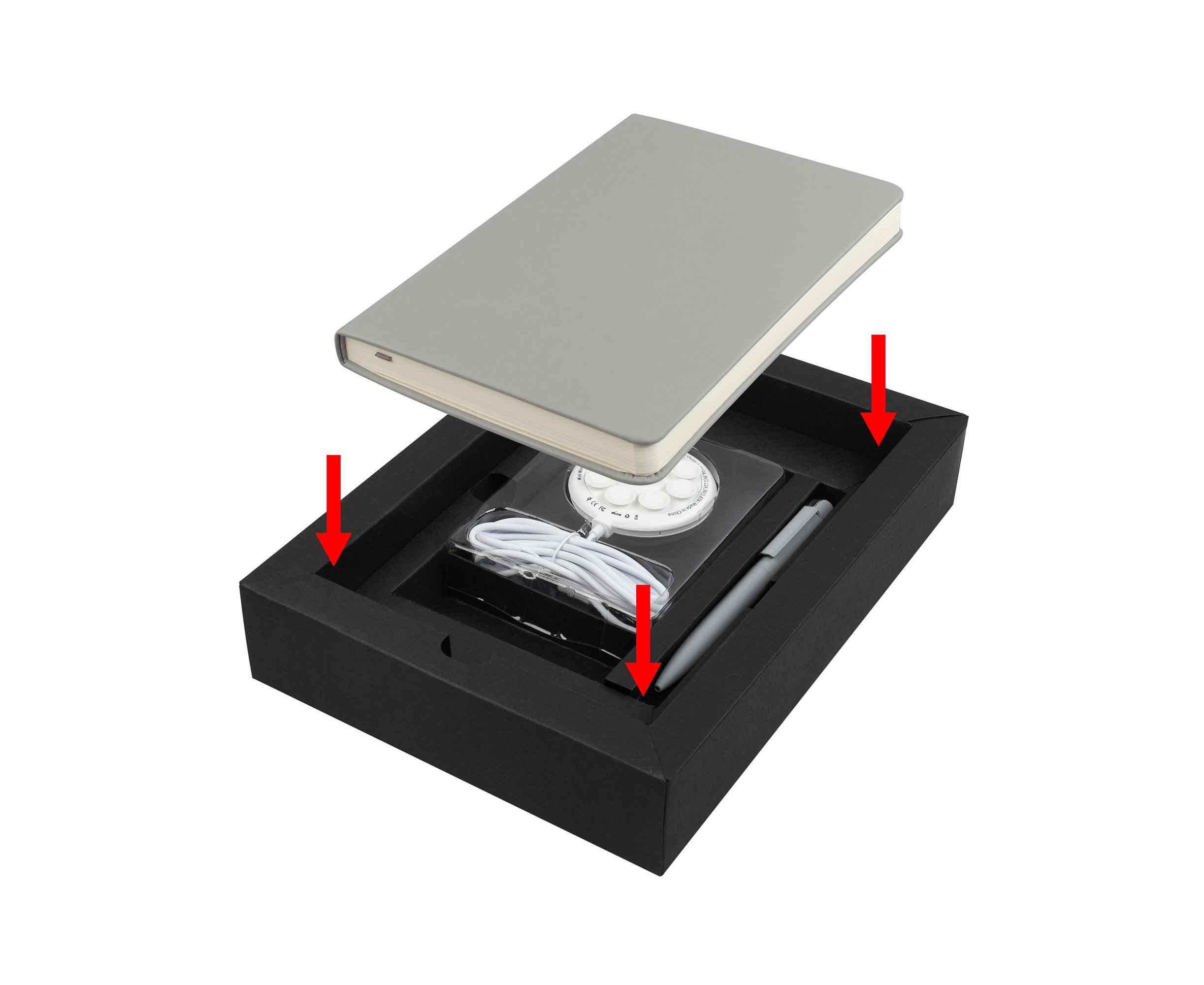 В набор входит: ежедневник "Милан" 3809-7 ; 14,5 х 21,2 х 2 см БЗУ "Sticker" 15W 7757-1 ; 6,3 х 1,3 см ручка "Jupiter" 6826-7S ; 13,7 х d 1,1 см   подарочная коробка 18,6 х 25,8 х 5
