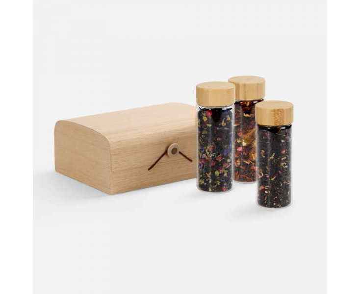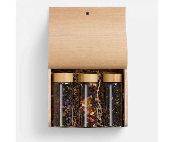 Изысканный набор из трех черных чаев в элегантной шкатулке из шпона.