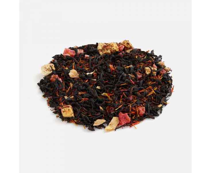 Состав: чай черный кенийский листовой, цедра лимона, слайсы апельсина, манго сублимированный кусочки, кусочки ананаса, ройбуш, сафлор, ароматизатор «кокос и ананас»