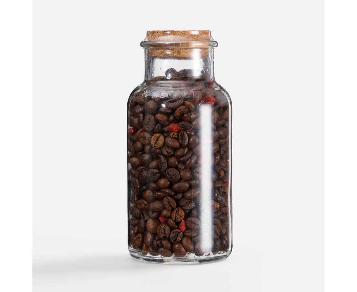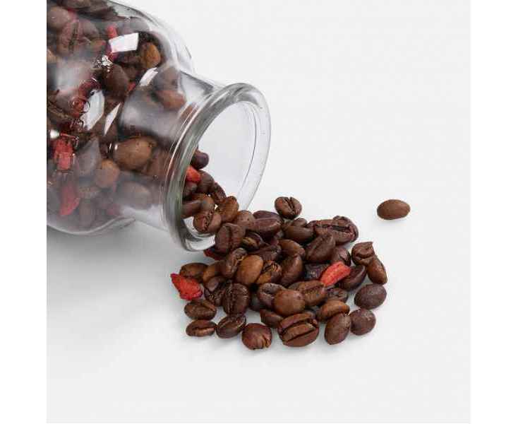 Состав: кофе натуральный жареный в зернах, сушеные ягоды годжи, ароматизатор натуральный «Барбарис».