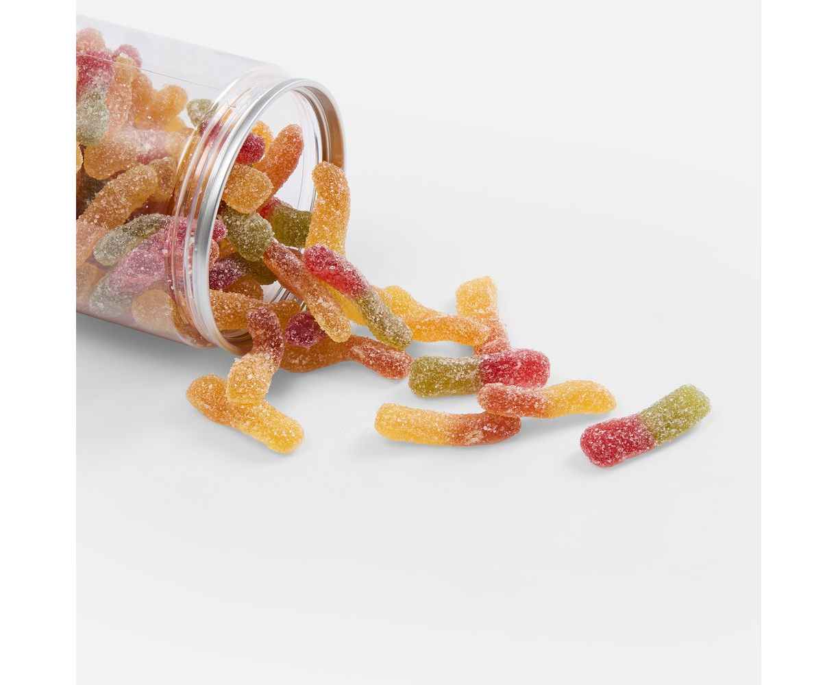Жевательный мармелад Jelly Sweets — это настоящий взрыв вкуса! Насладитесь тремя яркими сочетаниями: нежный персик с цитрусовой свежестью апельсина, сладкая клубника с кремовыми нотами банана и терпкая черная смородина с кислинкой лимона. Каждая змейка покрыта хрустящей кисло-сладкой посыпкой из измельченного сахара и яблочной кислоты, которая еще больше раскрывает сочную палитру фруктово-ягодных вкусов.Вес 150 г.