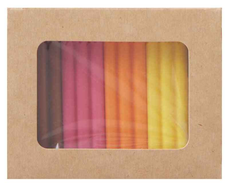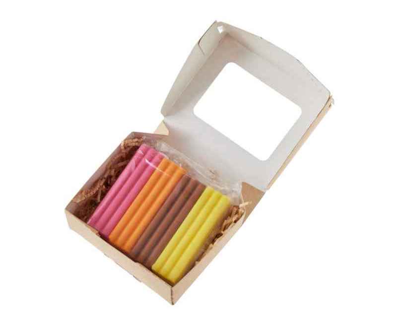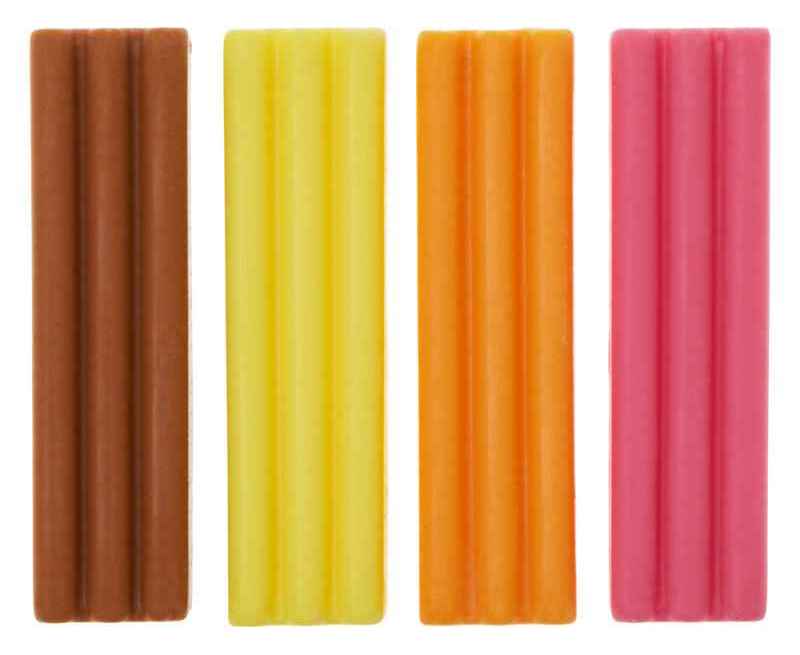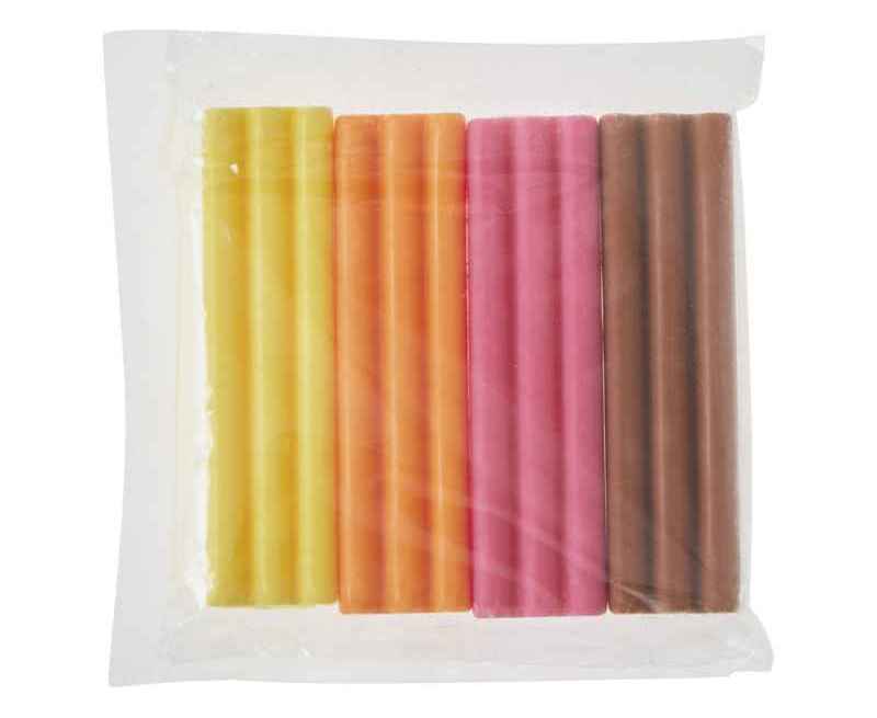 Яркие и необычные конфеты в форме, напоминающей пластилин, создают праздничное настроение и радуют глаз. Изготовлены из качественных ингредиентов. В каждом наборе — 4 ярких вкуса: банан, апельсин, малина и солёная карамель!