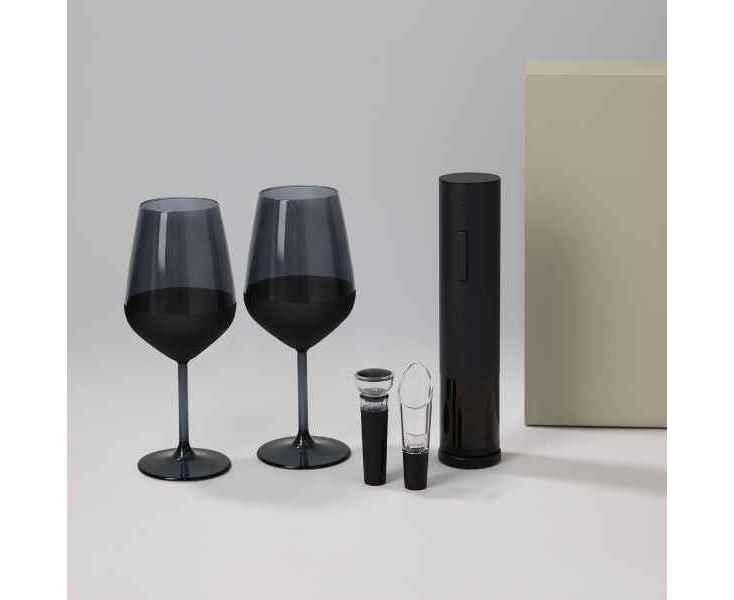Подробнее о Portobello Подарочный набор 2 бокала для вина Black Edition + набор для вина Sacramento в серой коробке