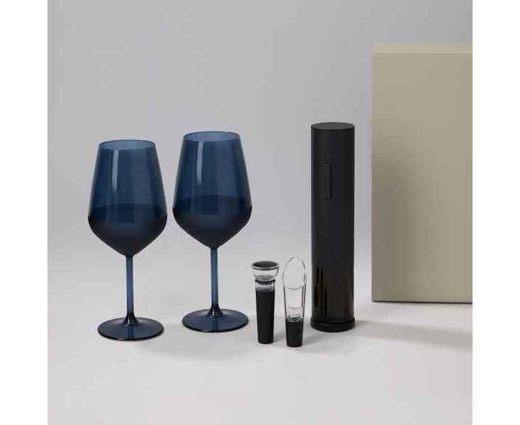 Подробнее о Portobello Подарочный набор 2 бокала для вина Sapphire + набор для вина с электрическим штопором Sacramento, в серой коробке