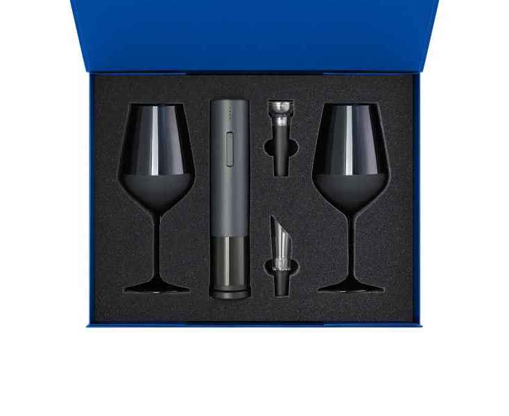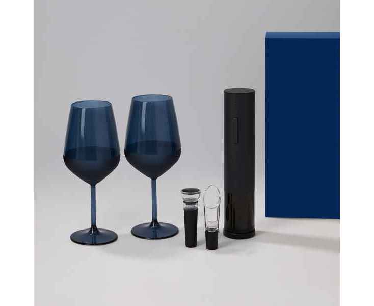 Подробнее о Portobello Подарочный набор 2 бокала для вина Sapphire + набор для вина с электрическим штопором Sacramento, в синей коробке