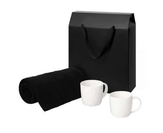 Подарочный набор Dafna, Cella, черный в коробке-пакете (две фарфоровых кружки, плед)